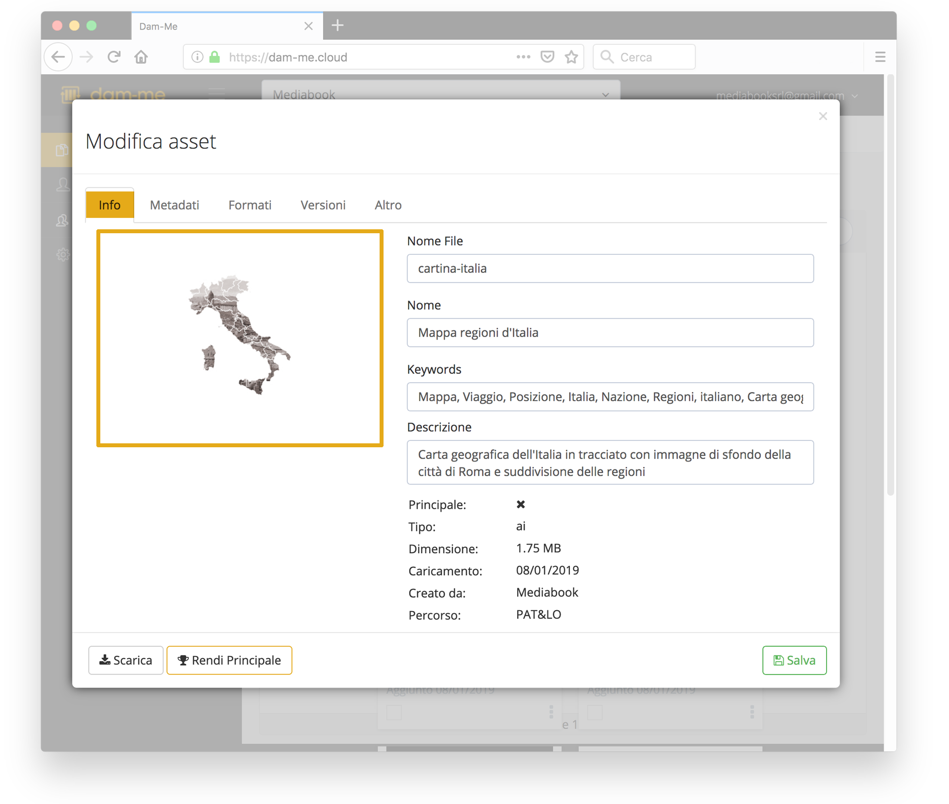Aggiungi metadati, keywords, descrizioni ad hoc in qualsiasi momento per rendere la ricerca di asset digitali più semplice e veloce.