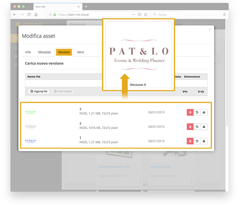 Gestisce più versioni di un asset digitale archiviato
